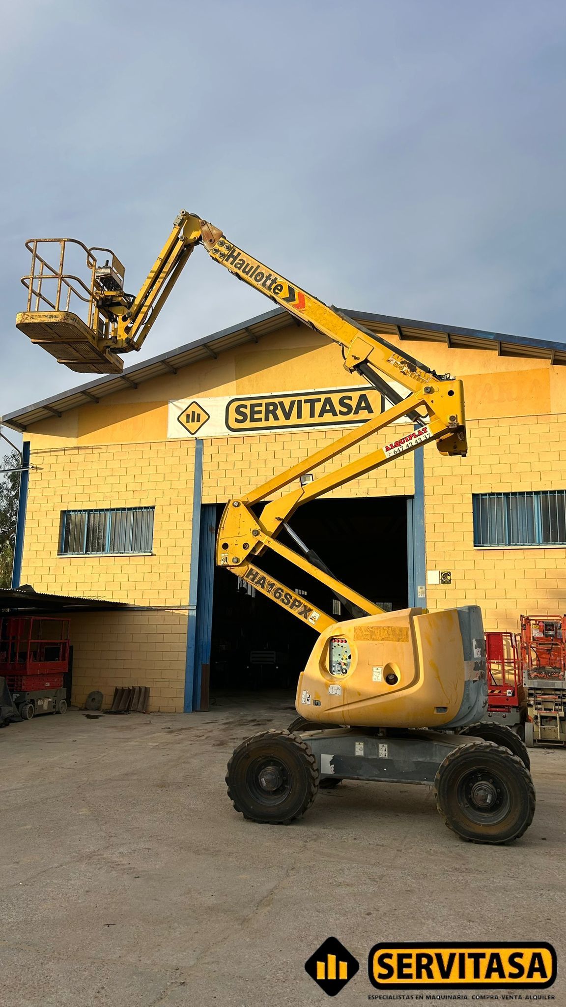 Brazo articulado diésel marca HAULOTTE, modelo HA16 SPX. El año de fabricación es 2006 y 5450 horas de trabajo. Tiene un altura de trabajo de 16 metros y tracción 4x4x4. El peso del equipo es de 6700 kilos y soporta una capacidad de carga de 230 kg. Dispone de C.E.. La máquina se encuentra en nuestro parque de maquinaria y se entrega revisada y operativa.